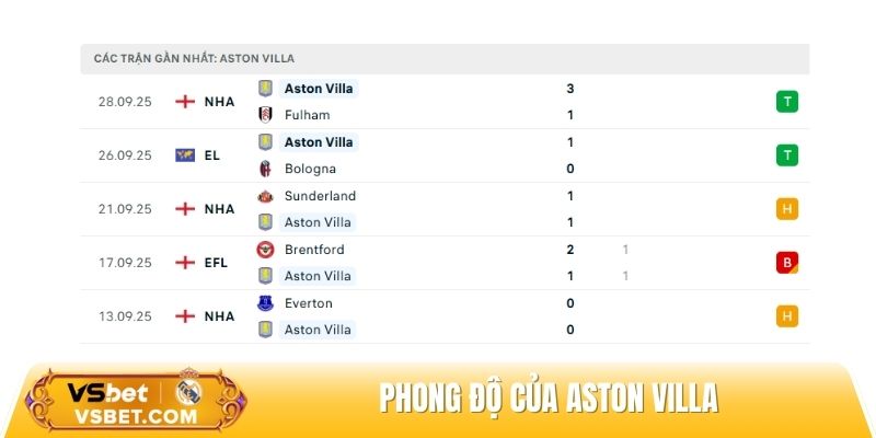 Hơn thế nữa, trong lần gần nhất tiếp đón đối thủ trên sân nhà của mình, Aston Villa cũng là những người được hưởng niềm vui thắng trận. Nếu chơi đúng phong độ, họ hoàn toàn có thể tìm kiếm trọn vẹn ba điểm.