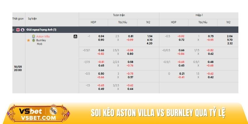 Soi kèo Aston Villa vs Burnley qua tỷ lệ