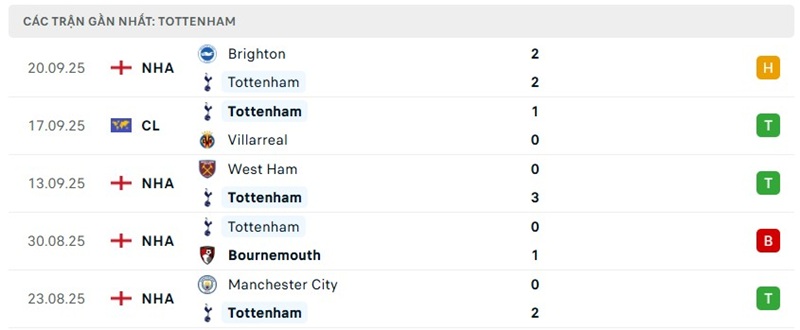 Tottenham đang có một khởi đầu như mơ tại Ngoại hạng Anh mùa này và hiện vững vàng ở vị trí thứ 3 trên bảng xếp hạng bóng đá. Phong độ của "Gà trống" là cực kỳ ổn định trong thời gian gần đây. Cụ thể, trong 6 trận đấu gần nhất trên mọi đấu trường, họ giành tới 4 chiến thắng, 1 trận hòa và chỉ phải nhận duy nhất 1 thất bại, ghi trung bình 1.83 bàn mỗi trận.