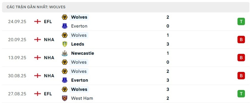 Phong độ của Wolverhampton