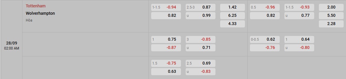 Soi kèo Tottenham vs Wolverhampton qua tỷ lệ
